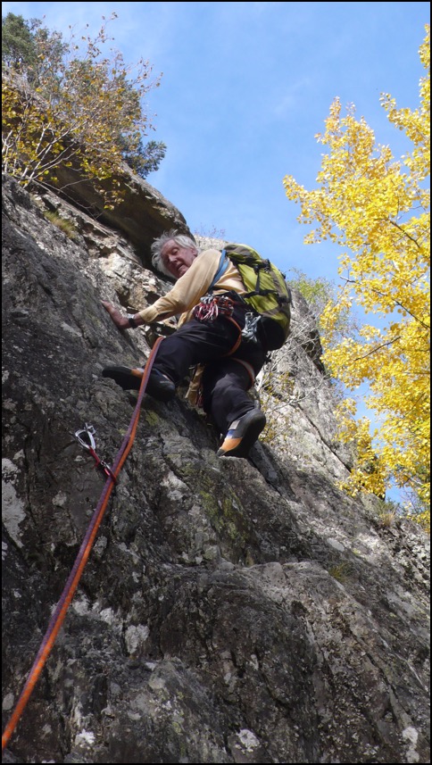 A peine de retour d’une semaine d’escalade à Kalymnos, Claude entend bien profiter au maximum de nos belles journées d’automne. C’est toujours un plaisir de côtoyer un tel enthousiasme !